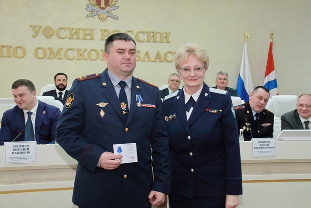 Руководитель Управления Федерального казначейства по Омской области Галина Сердюкова вручила ведомственную медаль «За Усердие и Пользу» начальнику ведомства Сергею Балдину.