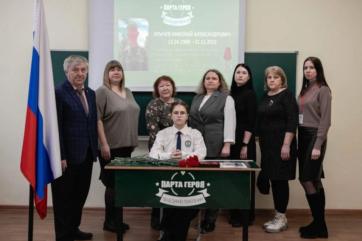 Парта посвящена выпускнику образовательного учреждения Николаю Хрычеву. Военнослужащий погиб при исполнении воинского долга 21 ноября 2023 года. За мужество и героизм Указом Президента боец награждён орденом Мужества посмертно.