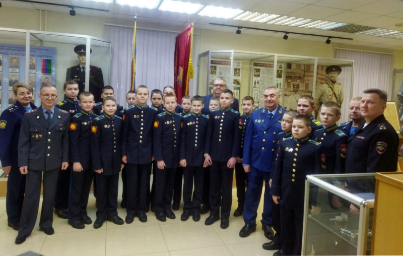 В Музее истории МВД по Республике Карелия с недавнего времени организуются «Встречи с генералом» - подрастающее поколение знакомится с теми, кто достиг высоких профессиональных высот. Февральским днём шестиклассникам Петрозаводского президентского кадетского училища довелось пообщаться с министром внутренних дел по Республике Карелия генерал-майором полиции Дмитрием Сергеевым и экс-прокурором Республики Карелия Кареном Габриеляном.