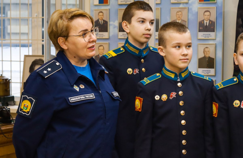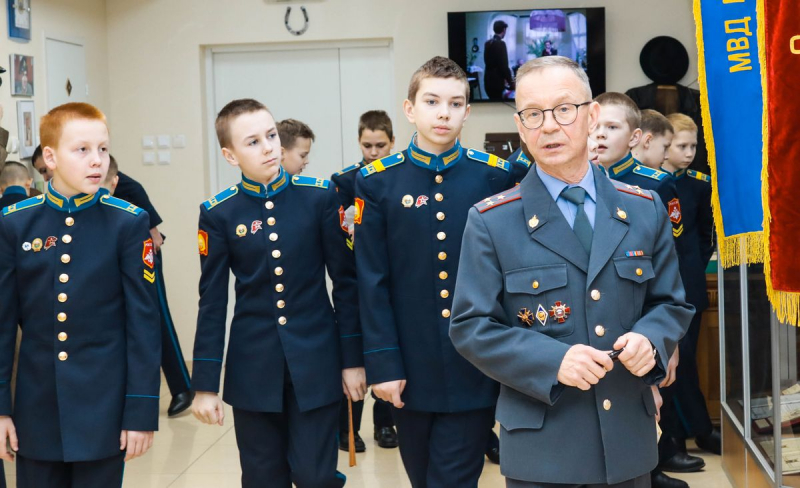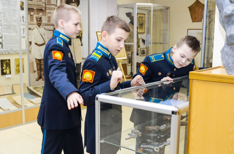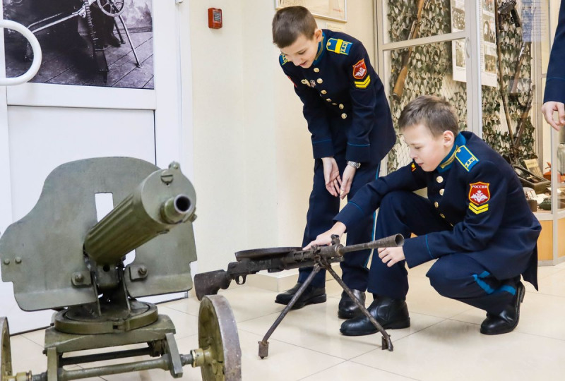 Затем состоялась экскурсия по музею истории. Её провёл хранитель фондов полковник милиции в отставке Дмитрий Александров. Школьники в форменном обмундировании оказались весьма любопытны: пытались понять, как функционирует патефон, как именно создано кустарное оружие, изъятое у злоумышленников прошлых лет, удивлялись настоящим экземплярам пулемётов, которые использовались со времен Первой мировой и рассматривали образцы дронов, попавших в экспозицию прямо из зоны проведения СВО.