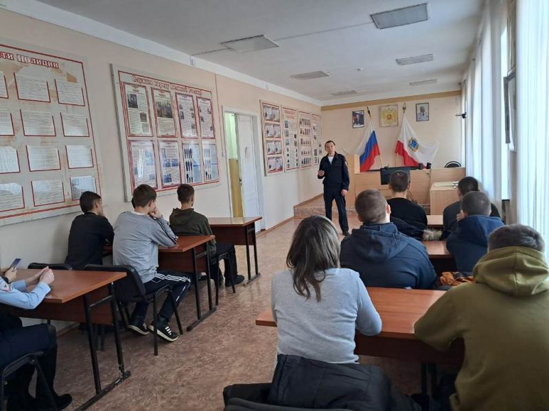 Состоялась встреча с руководством отделения и ветеранской организации. Начальник ОП № 2 майор полиции Алексей Савенков и председатель ветеранской организации ветеран боевых действий пообщались с молодежью, рассказав о деятельности полиции, важности ее для государства и граждан.