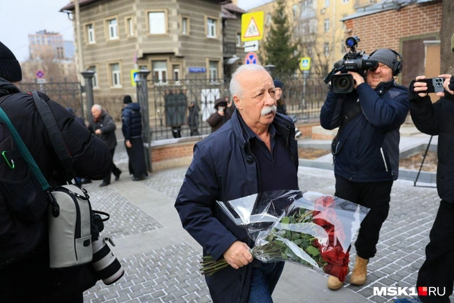 Также на прощание с букетом красных роз пришел ведущий программы «Поле чудес» (16+) Леонид Якубович.