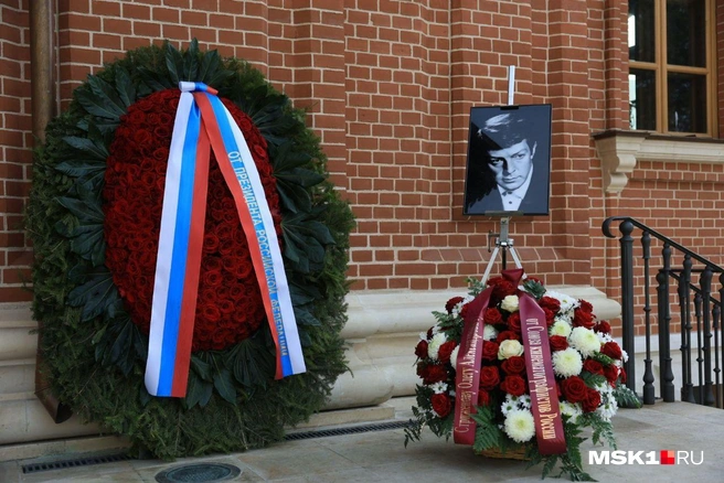 С утра к храму люди приходили с цветами и траурными венками. Среди них — венки от президента России и от Союза кинематографистов.