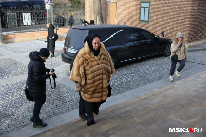 Проститься с актером пришла и Лариса Гузеева. Ведущая программы «Давай поженимся» (16+) появилась у храма в траурном платке и шубе.