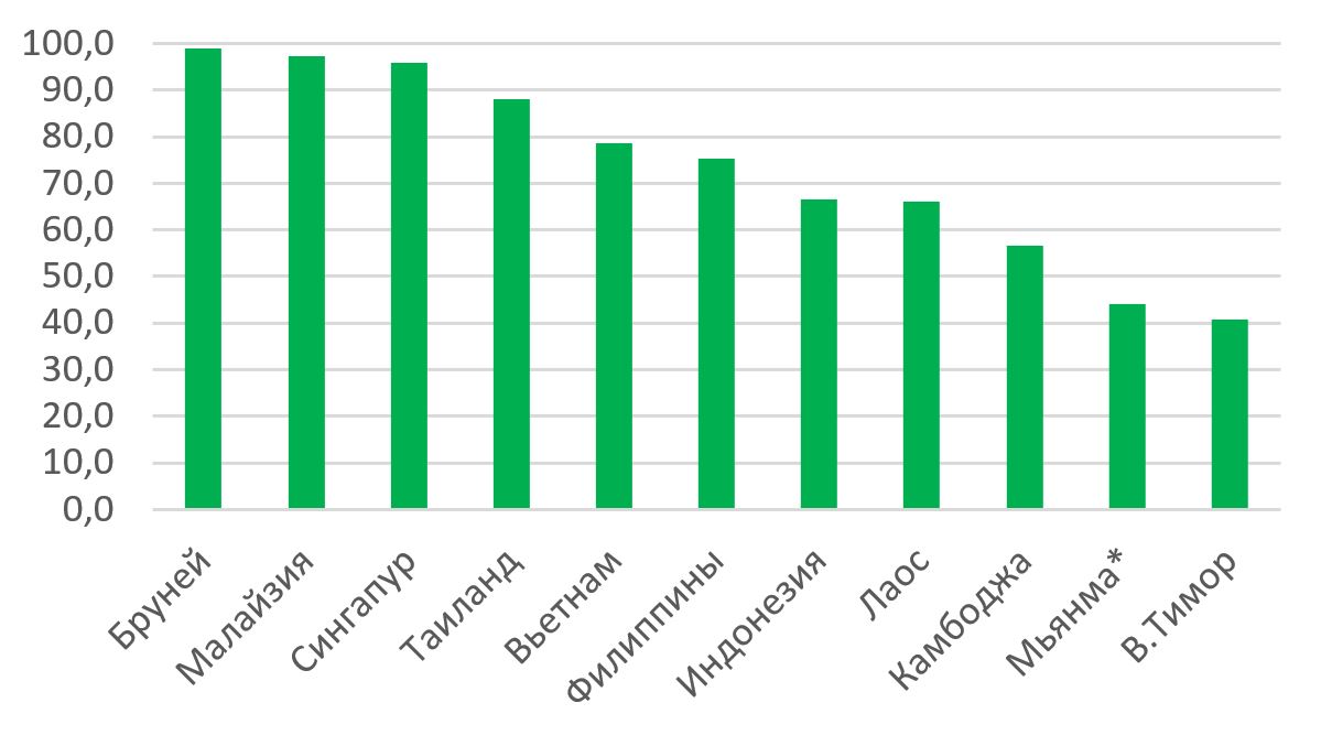 График 5. Число пользователей Интернетом в странах ЮВА в 2022 г., в % от общего населения