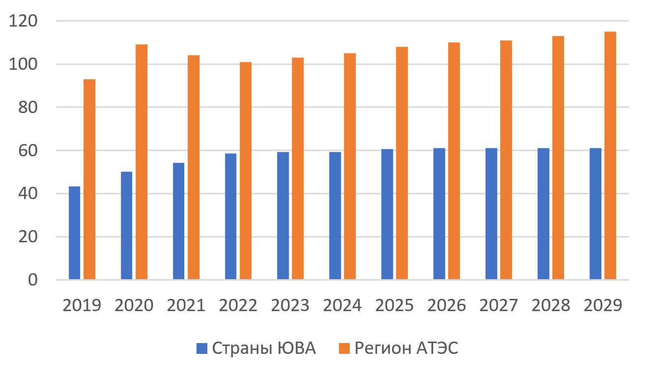На позитивный результат повлияли устойчивый внешний спрос, рост внутреннего потребления в Индонезии, Вьетнаме, Малайзии и на Филиппинах, расширение инвестиций, во многом государственных, и увеличение экспорта. В 2024 г. также укреплялся туризм: в ряде стран, например, во Вьетнаме, соответствующие показатели снова вышли на допандемийный уровень. Поддержку этому сектору оказывает и то, что после «ковидной паузы» китайские туристы, которые до 2020 г. занимали первое место среди иностранных гостей во многих странах региона, стали возвращаться в Малайзию, Сингапур и Таиланд.
