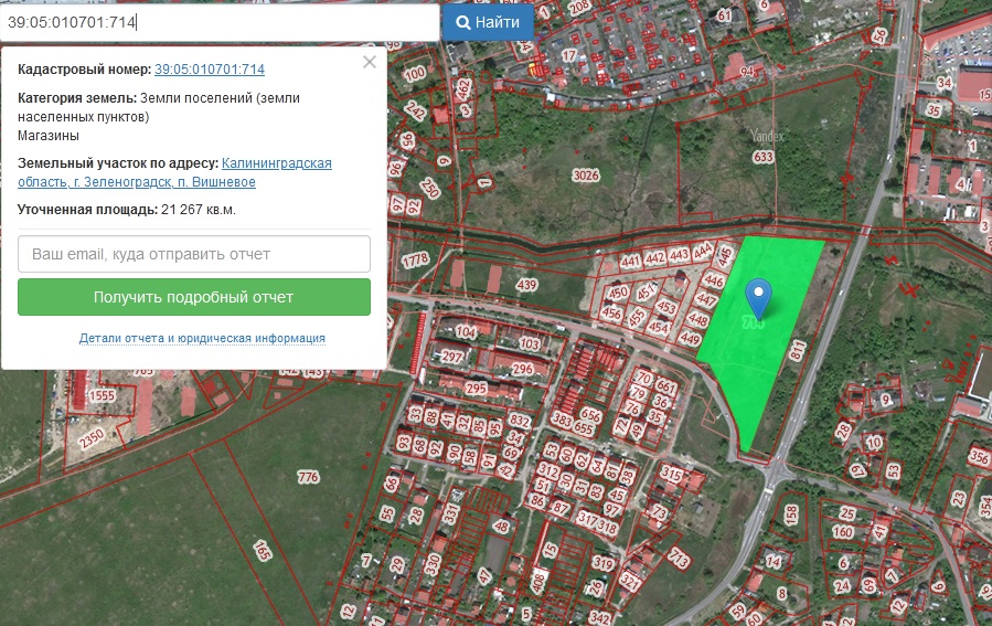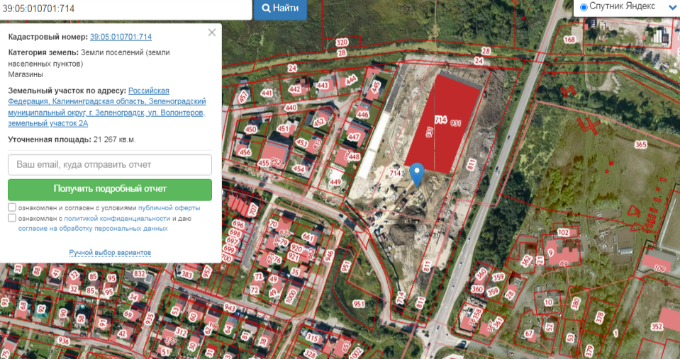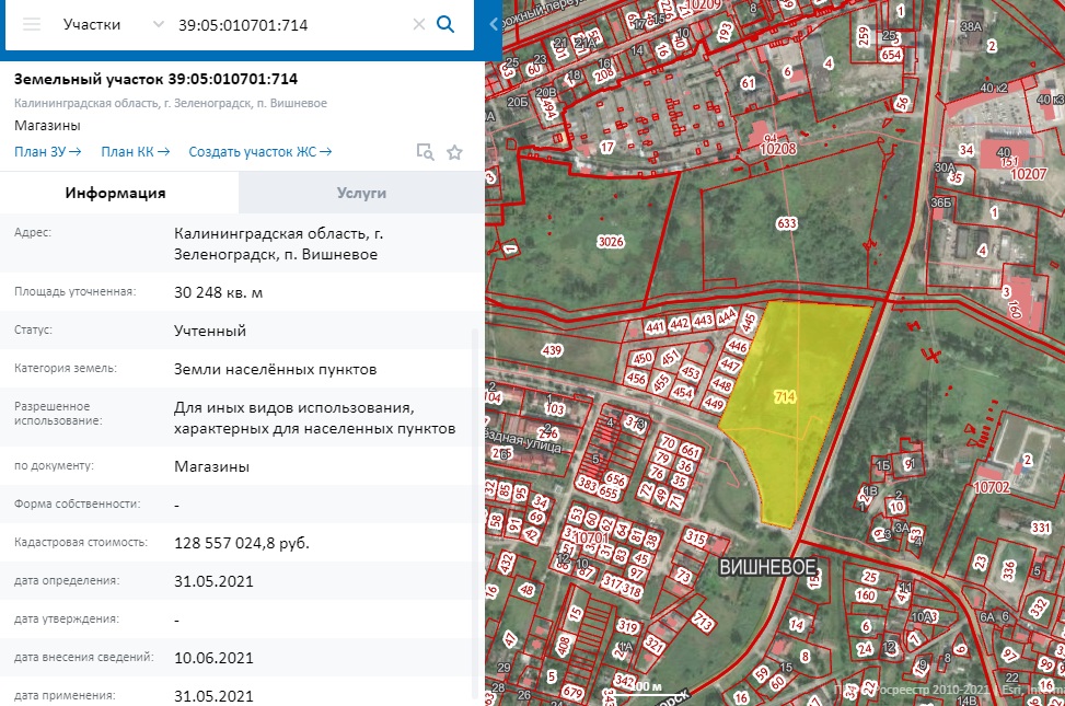 Участок под магазины на въезде в Зеленоградск изначально имел единый номер 39:05:010701:714 и площадь 3,02 га.
