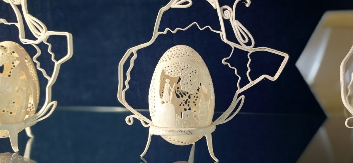 В экспозиции представлено около 170 работ, часть из которых выполнена в редкой технике резьбы по яичной скорлупе. Работы представлены из коллекции Альбины Праздничных. Помимо своих работ, в коллекции автора есть расписные деревянные яйца, работы из пластика, керамики, бисера, валяной шерсти, даже камня, глины и стекла. Часть изделий изготовлена самой владелицей коллекции, остальное – экземпляры из других городов России и даже из-за рубежа.