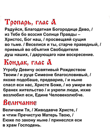 Тропарь Сретения. Кондак Сретения