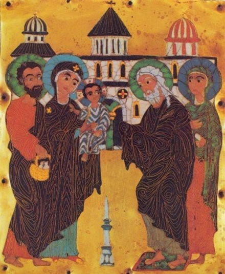 По еврейскому обычаю на 40-ой день после рождения младенца приносили в Храм для посвящения Богу. Этот обычай был установлен в память Исхода иудеев из Египта и освобождения от многовекового рабства.