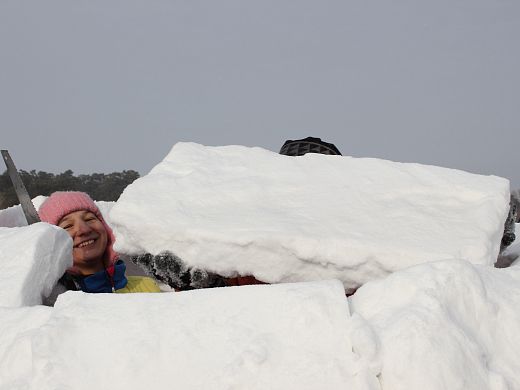 «Мы приехали с семьёй, друзьями. Нас 13 человек. Кто-то блоки готовит, кто-то инженерную работу проводит, кто-то стол накрывает, а кто-то языком чешет. Участвуем первый раз. Дважды ходили и смотрели, а в этот раз решили тоже построить иглу. Всё очень интересно. Радуемся, что погода хорошая — без ветра, солнышко светит. Мы читали, как делать иглу, но всё равно вышло не без ошибок. Всё учтём и в следующем году сделаем лучше», — улыбается новосибирец Антон Желнов.