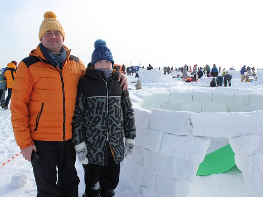 «В прошлом году с погодой не повезло. Было холодно, сильный ветер. Строили 4 часа. В этот раз управились за 1 час 35 минут. Строим тремя поколениями, так сказать. И детей взяли, и бабушку. Хочу отметить шикарную организацию. В восторге», — рассказал Горсайту участник команды «ИглуСпецСтрой» Вадим Чухонцев.