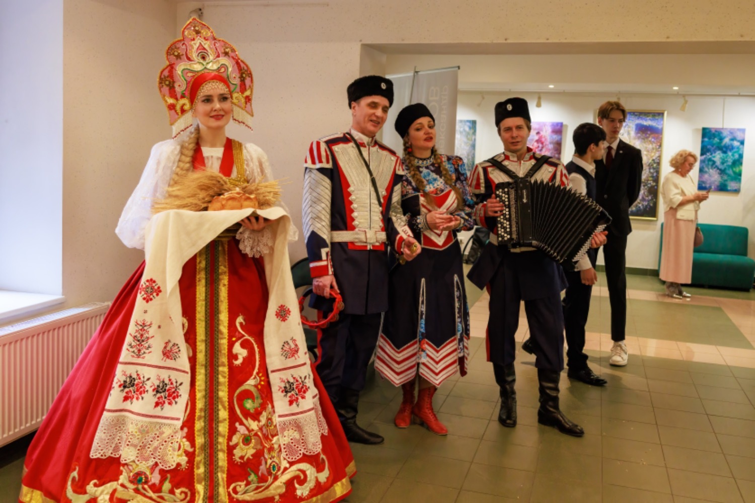 В фойе была представлена выставка «Наследие и традиции России» от мастерской «Древо» Ирины Николаевой, «С верой за Отечество» от Творческого союза художников России, книги Сухейля Фараха от ИД Академии имени Н. Е. Жуковского, «Мир глазами детей», «Сияние» художника Александра Маранова, препарат «Аргенсепт» от ООО «Лаборатория Аргентум» под руководством доктора медицинских наук, офтальмохирурга Владимира Лапочкина, сеть студий коррекции фигуры и СПА — XSize под руководством Элоны Товмасян, высокогорный мед «Золото гор» с экомест Киргизии от Татьяны Серавиной, выставка «Феномен Чебурашки» — от неведомой зверушки советского периода до талисмана на СВО» от Елены Москвичевой.