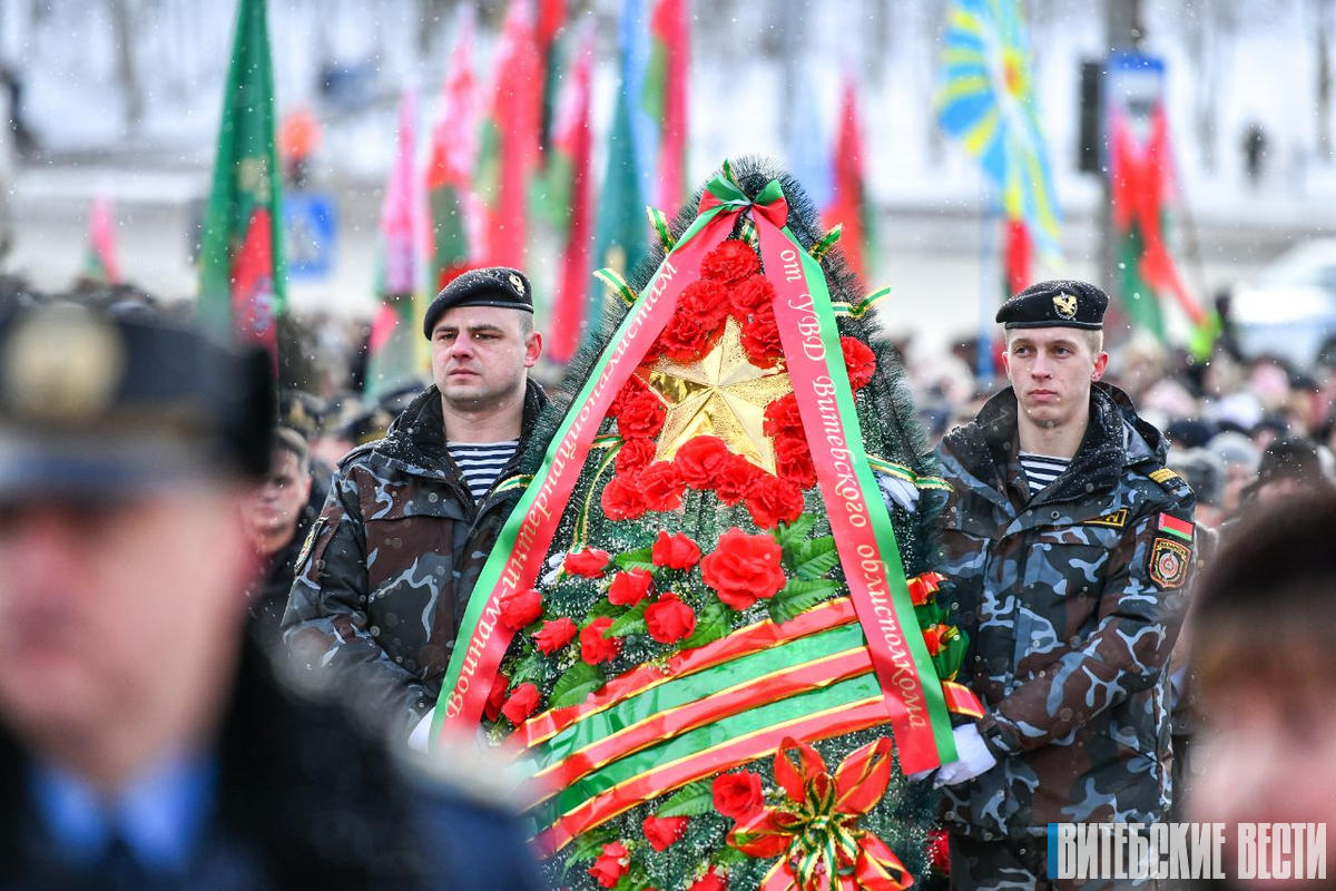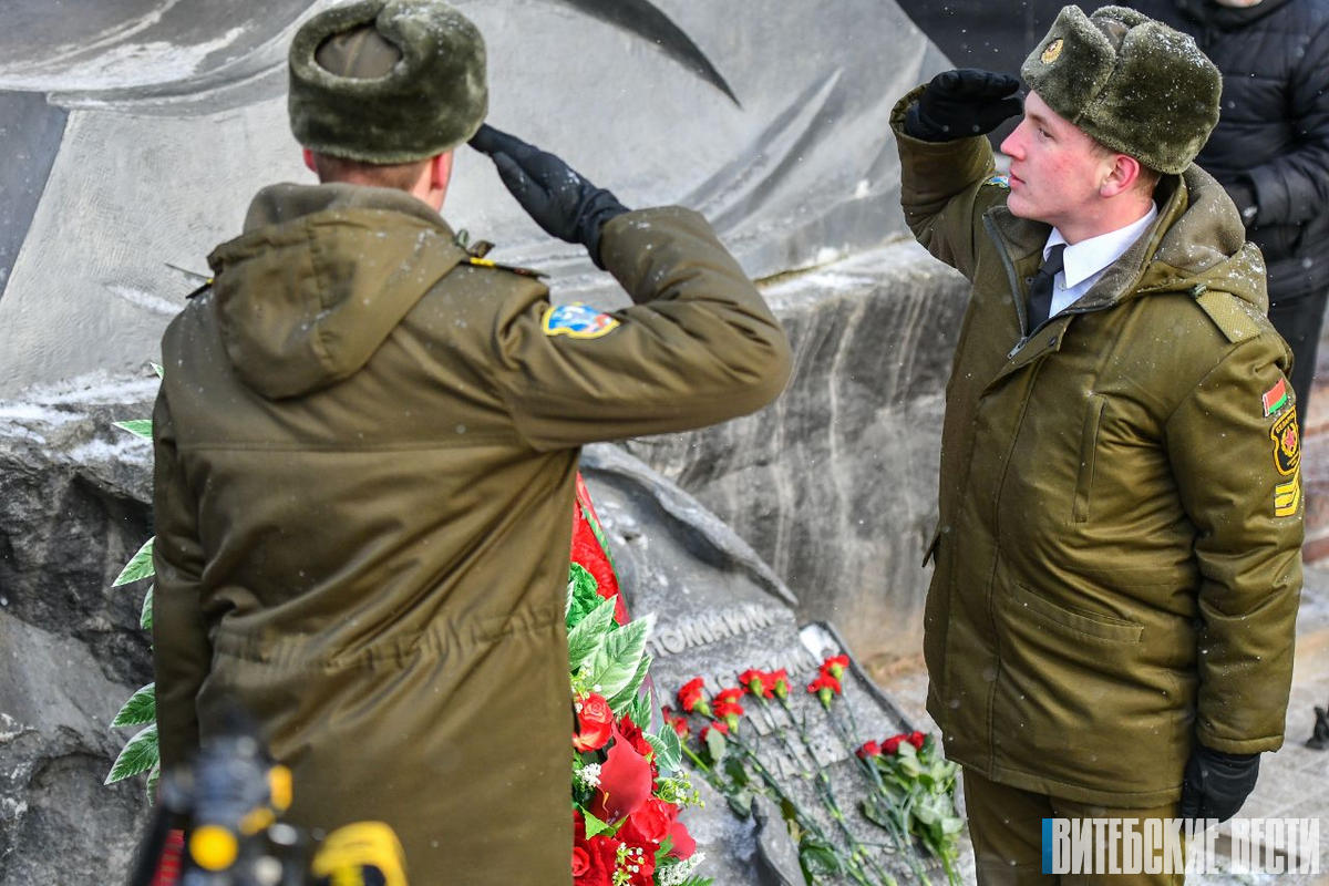 Дата 15 февраля 1989 года, когда последние части советских войск вышли из Афганистана, вписана в историю страны, как радостный и скорбный день. Это праздник со слезами на глазах, которые не осушили прошедшие десятилетия. Каждый год в морозный февральский день люди приходят к мемориалу на улице Воинов-интернационалистов. Очень символично название памятника – «Боль». С болью в сердце вспоминают ветераны о пережитом, сильные мужчины, которые прошли страшные испытания, с трудом сдерживают комок в горле. – Для нас афганская война – это гордость и боль. Гордость за то, что мы с честью выполнили свой долг, достойно делали мужскую работу. И это отмечено государственными наградами. Два уроженца Витебщины – Василий Щербаков и Василий Пименов – удостоены высокого звания Героя Советского Союза. А боль за потерю друзей. В Афганистане погибли 160 наших земляков и около 1,5 тысяч человек, вернувшихся на Родину, ушли из жизни из-за последствий войны. Сегодня мы склоняем головы перед матерями и вдовами, – отметил председатель областной организации Белорусского союза ветеранов войны в Афганистане подполковник в отставке Валерьян Мацкевич. В митинге у памятника воинам-интернационалистам приняли участие член Совета Республики Национального собрания Республики Беларусь Ирина Левкович, руководство Витебска, представители государственных структур, общественных организаций, молодежь, жители областного центра. Самое почетное место заняли ветераны афганской войны. – Витебск первым провожал в Афганистан солдат и офицеров 103-й гвардейской воздушно-десантной дивизии и летчиков 339-го полка военно-транспортной авиации, и первые похоронки из далекой страны также пришли в наш город. Сегодня воины-афганцы передают молодому поколению эстафету патриотизма и боевого братства, своим примером учат быть ответственными за судьбу Отечества, – подчеркнул председатель Витебского горисполкома Алексей Героев. – Я попал в число первых четырех экипажей, которые осваивали легендарный Ил-76 в витебском 339-м авиаполку. На этом самолете в течение десяти лет мы доставляли в Афганистан десантников, боеприпасы. Самым тяжелым был груз 200 – цинковые гробы с погибшими, которые мы вывозили из Афганистана в разные концы Советского Союза, – вспоминает подполковник в запасе Николай Стативко. С портретами воинов, не вернувшихся с афганской войны, выстроились витебские кадеты. Многие из них связывают свою будущую жизнь с армией. Мечтает сменить кадетские погоны на офицерские и Александр Шляхтунов, дядя которого десантник Владимир Пилипенко участвовал в боевых действиях. На митинге поименно вспомнили всех, кто не вернулся из боя. В скорбном списке 160 имен, которые отзывались болью в сердцах всех, кто пришел поклониться памяти воинов, выполнявших свой интернациональный долг.
