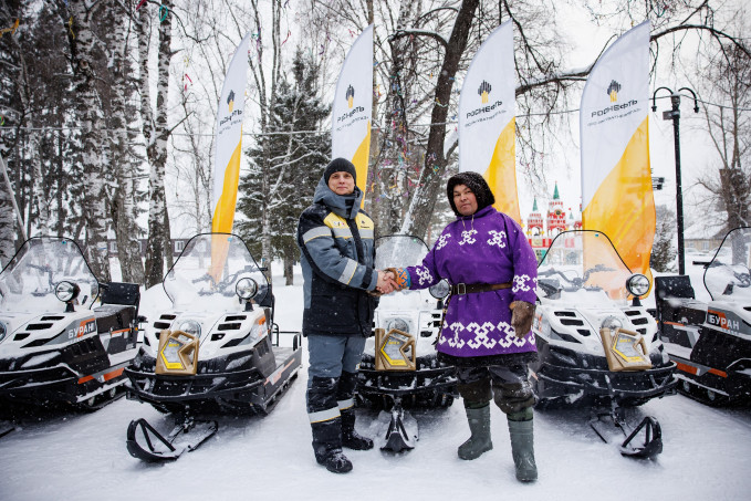 «РН-Уватнефтегаз» поддерживает представителей ханты, манси и эвенков Тюменской области. Нефтяники совместно с администрацией Уватского муниципального района вручили коренным жителям технику для ведения традиционных промыслов – снегоходы, лодочные моторы, бензиновые генераторы электроэнергии, а также моторное масло НК «Роснефть» для двигателей. В общей сложности, за последние годы предприятие передало семьям ханты более 160 единиц техники.