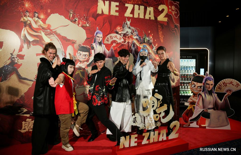 11 февраля 2025 года, зрители фотографируются возле рекламного плаката китайского анимационного фильма “Нэчжа-2” в кинотеатре IMAX Sydney в Сиднее /Австралия/.