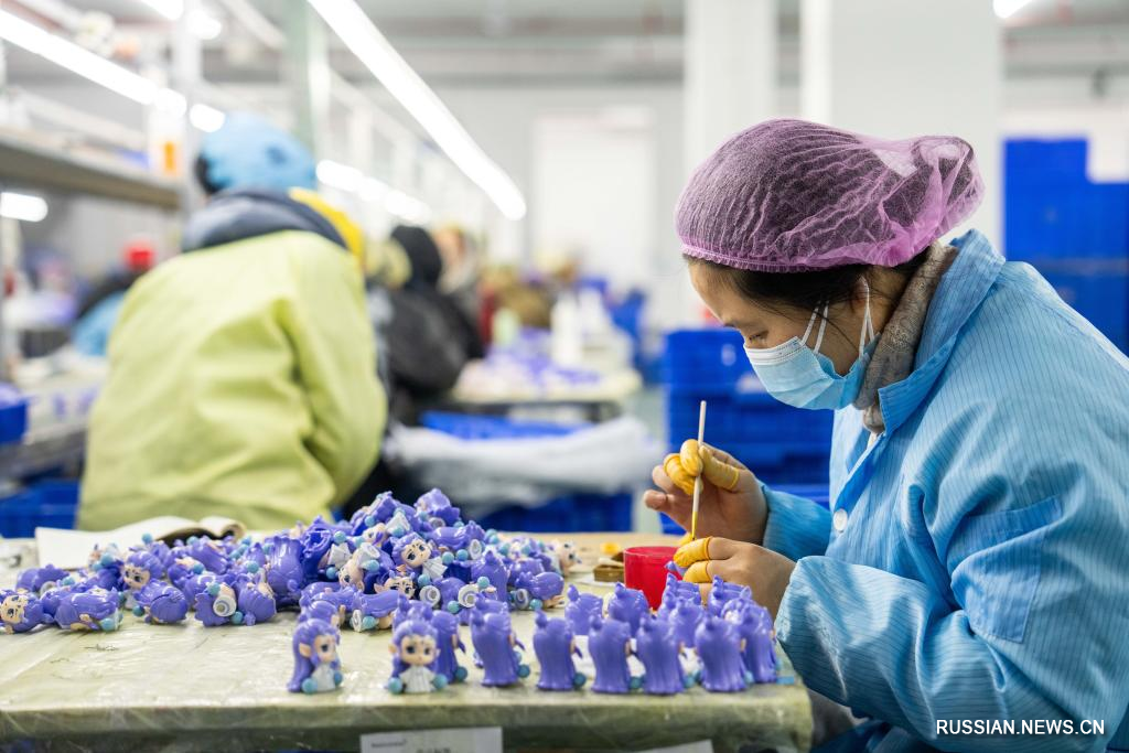 8 февраля 2025 года, сотрудник изготовляет фигурку Ао Бина, персонажа из анимационного фильма “Нэчжа-2”, на фабрике по изготовлению игрушек в городе Сянтань провинции Хунань /Центральный Китай/.