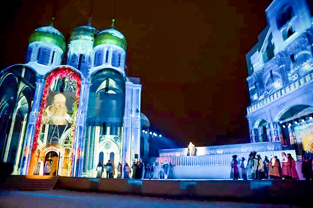 В кинопарке "Москино" продолжаются показы "Соборной площади", исторического шоу, поставленного Новым театром и посвященного событиям Смутного времени.