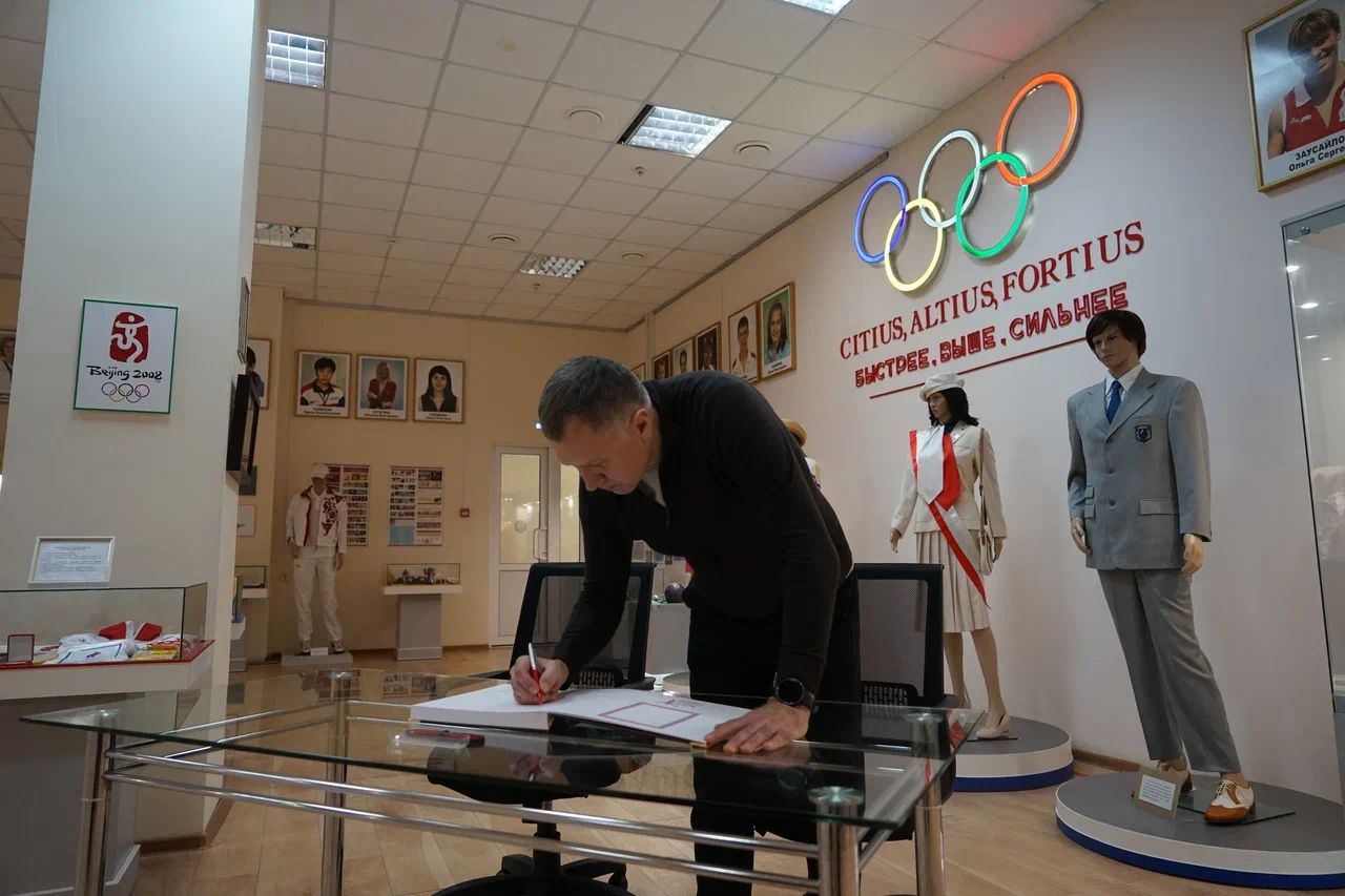 Дмитрий Лаврентьев высоко оценил экспозицию музея спорта и выразил готовность передать в дар несколько ценных экспонатов из своей личной коллекции.