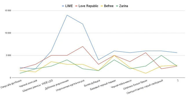 «Фонтанка» проанализировала цены и ассортимент в четырнадцати магазинах — и в онлайне, и в офлайне. Среди них — закрывшие магазины зарубежные бренды, те, кто пришел им на смену, и те, кто никуда и не уходил. Для чистоты эксперимента мы отобрали 24 позиции — от маек и футболок до курток и экошуб — и нашли в магазинах максимально схожие предметы одежды по фасону и составу.
