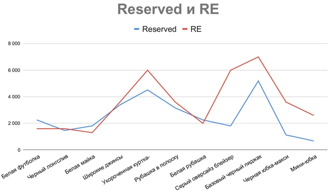 Та же история с Reserved и RE — новый бренд, по подсчетам «Фонтанки», оказался дороже старого. В среднем на 15–20 %. Для сравнения: серый оверсайз блейзер из RE за 5 999 рублей можно найти в Reserved по скидке чуть меньше, чем за две тысячи. Классический черный пиджак за 6 999 рублей — за 5 191 рубль.