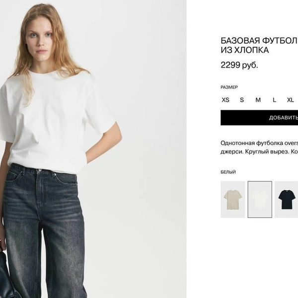 Зато верх в магазинах в РФ все же дешевле: белая хлопковая оверсайз футболка в Reserved — 2 256 рублей, в RE — 1 599, белая майка — 1 805 рублей и 1 299 рублей соответственно.