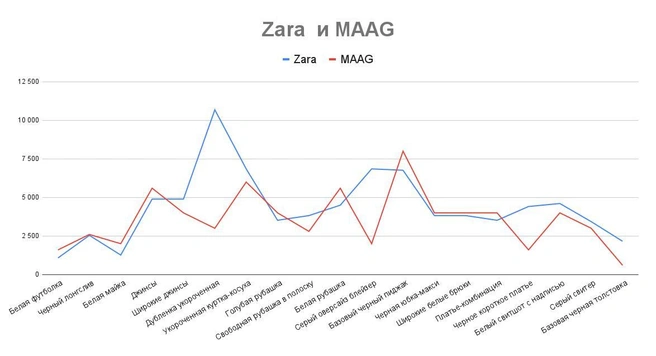 В паре Zara и Maag — почти ничья. Есть как товары, которые за рубежом дешевле на 15–20 %, а то и на все 60 %, так и те, кто на полках «преемника» дешевле сразу на 70 %.