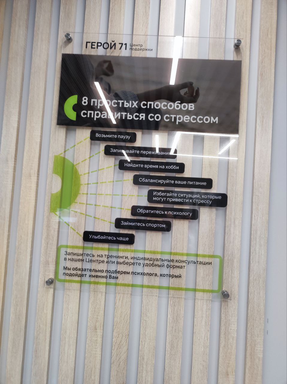 Встретила гостей заместитель директора-руководитель отделения «Герой 71»Наталья Голикова. Она рассказала о главных задачах центра, которые направлены на поддержку военнослужащих и их семей. Акцентировала внимание на том, что учреждение работает по принципу единого окна, где можно решить все актуальные вопросы и получить полный спектр услуг от подачи документов на соцподдержку до решения частных проблем и познакомила с коллективом центра. Это кураторы, профессиональные психологи и юристы.