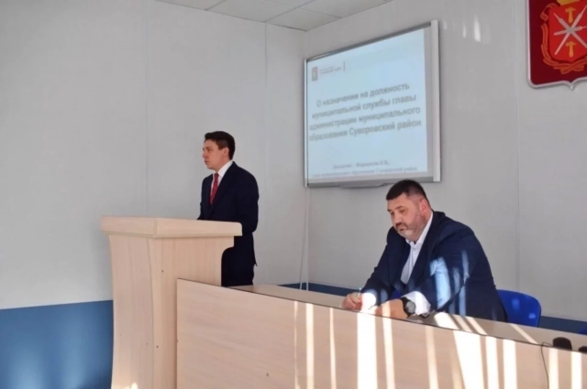 На заседании собрания представителей Суворовского района были рассмотрены две кандидатуры на пост главы местной администрации, который стал вакантным после отставки Геннадия Сорокина. Глава муниципального образования Константин Ферапонтов представил депутатам кандидатов. Это временно исполняющий обязанности главы районной администрации Юрий Фомичёв и глава Суворова, председатель собрания депутатов города и депутат собрания представителей района, директор средней общеобразовательной школы № 5 ЦО г. Суворова им. Е.П. Тарасова Евгения Медведева.