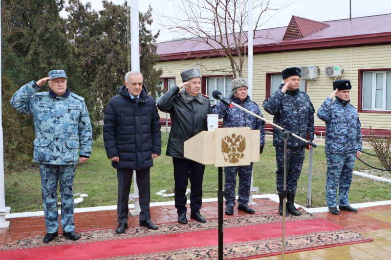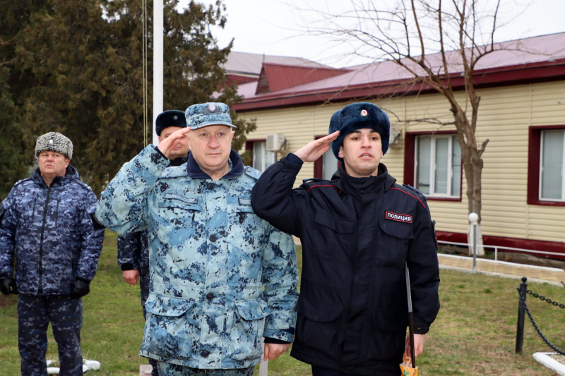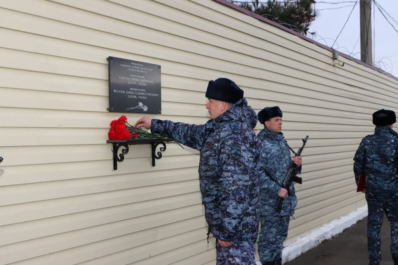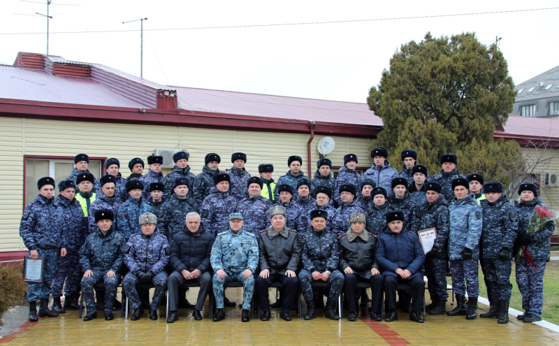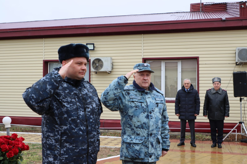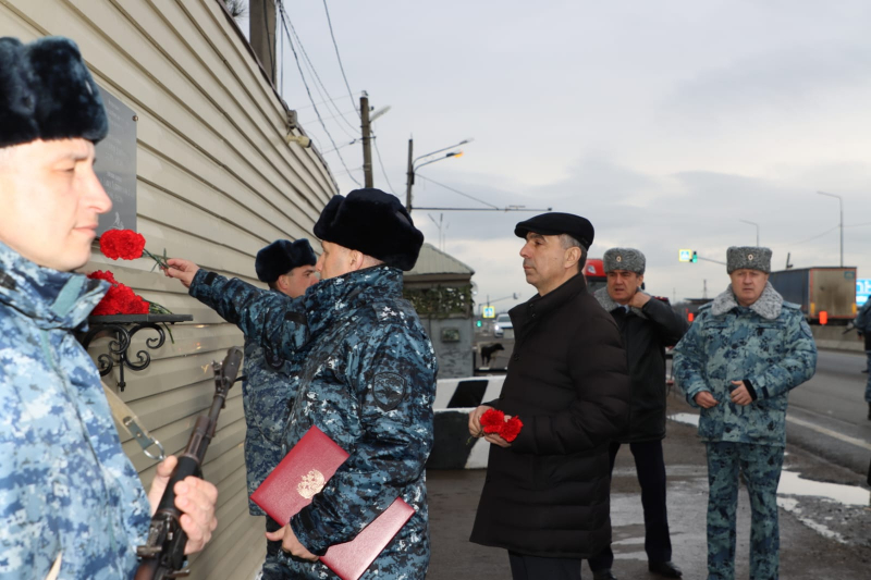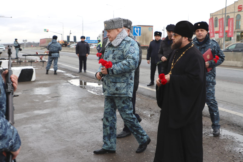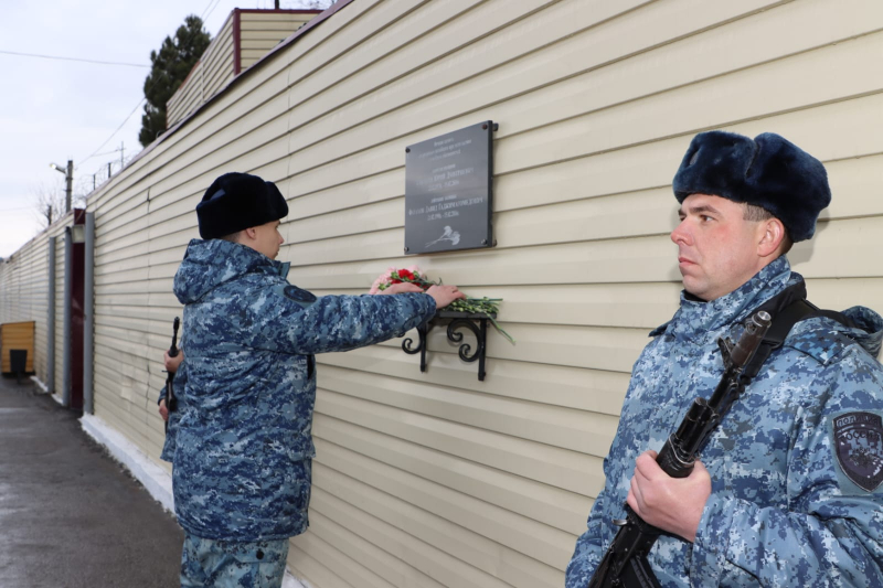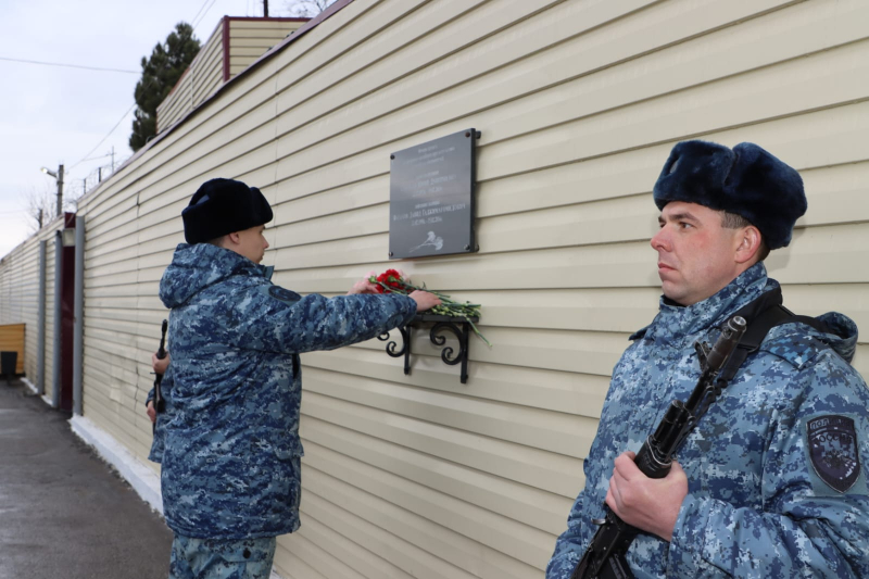 В завершение мероприятия Юрий Арсентьев, Абдурашид Магомедов, Сахават Сахаватов, руководство и личный состав ВОГ возложили цветы к мемориалу сотрудникам полиции, погибшим при исполнении служебного долга.