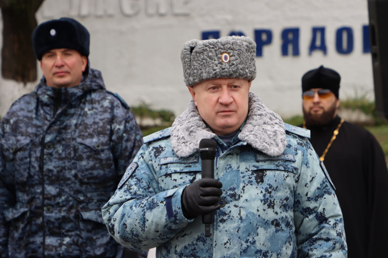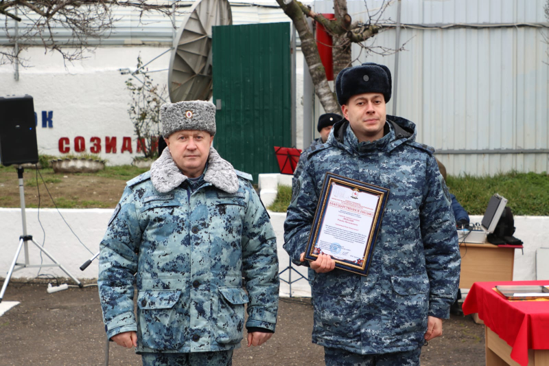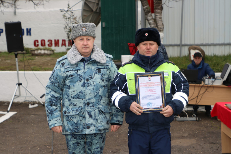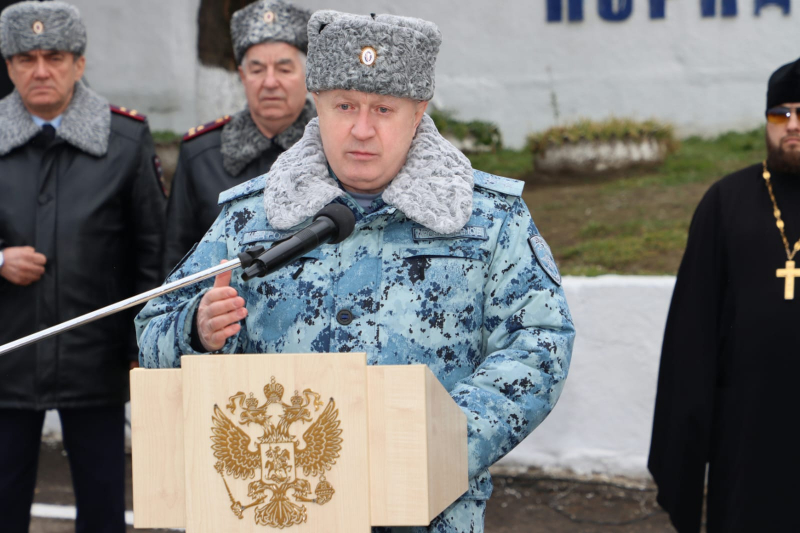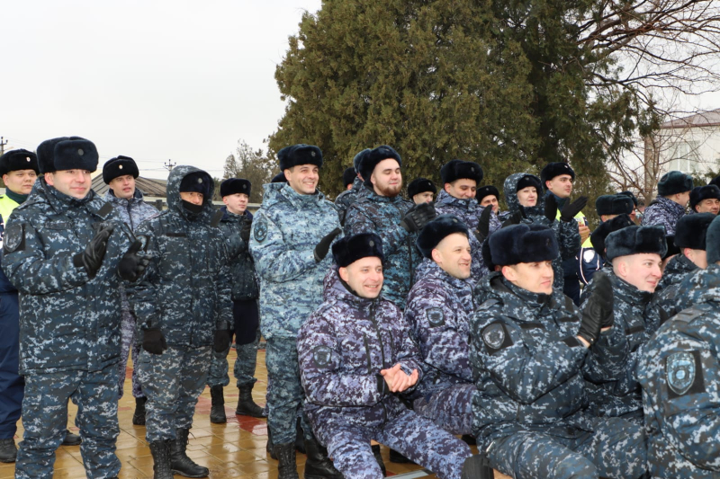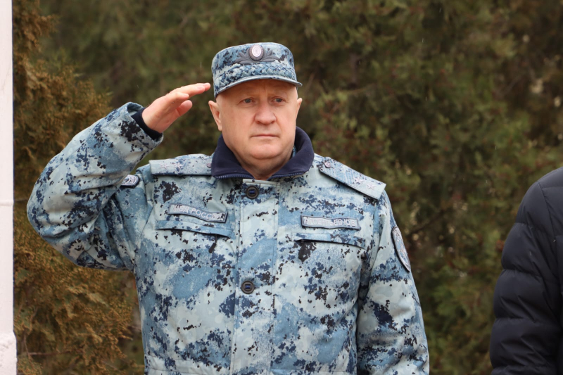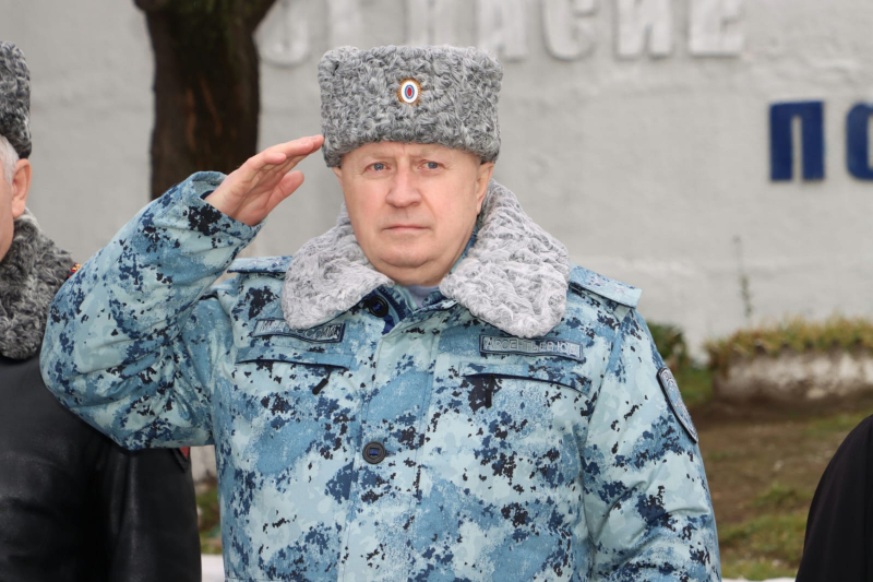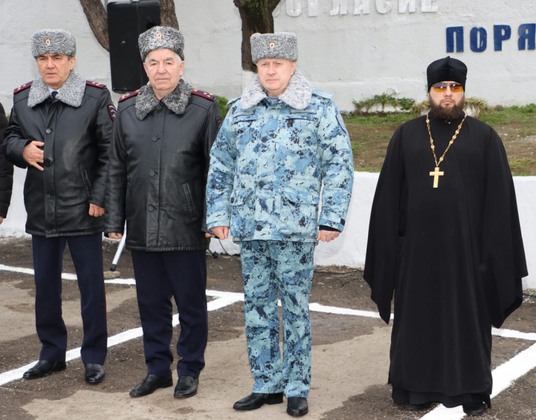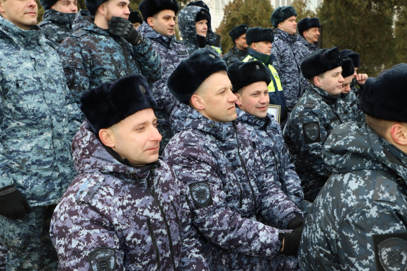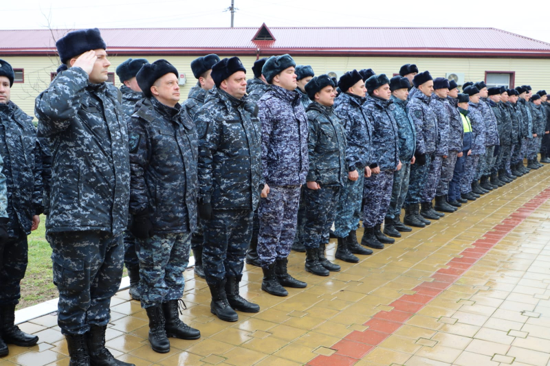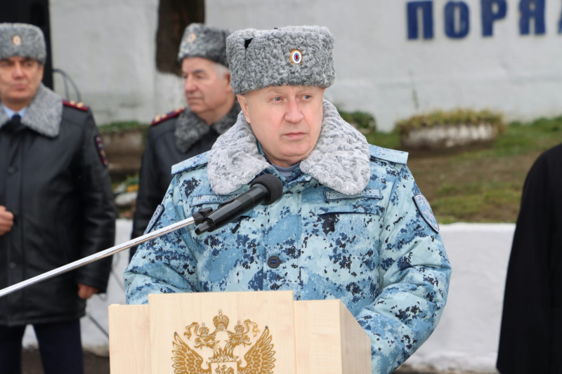 От всего личного состава, ветеранов Главного управления МВД России по Нижегородской области генерал-лейтенант полиции поздравил всех сотрудников сводного отряда полиции и коллег с наступающим Днём защитника Отечества и предстоящей Восьмидесятой годовщиной Великой Победы!
