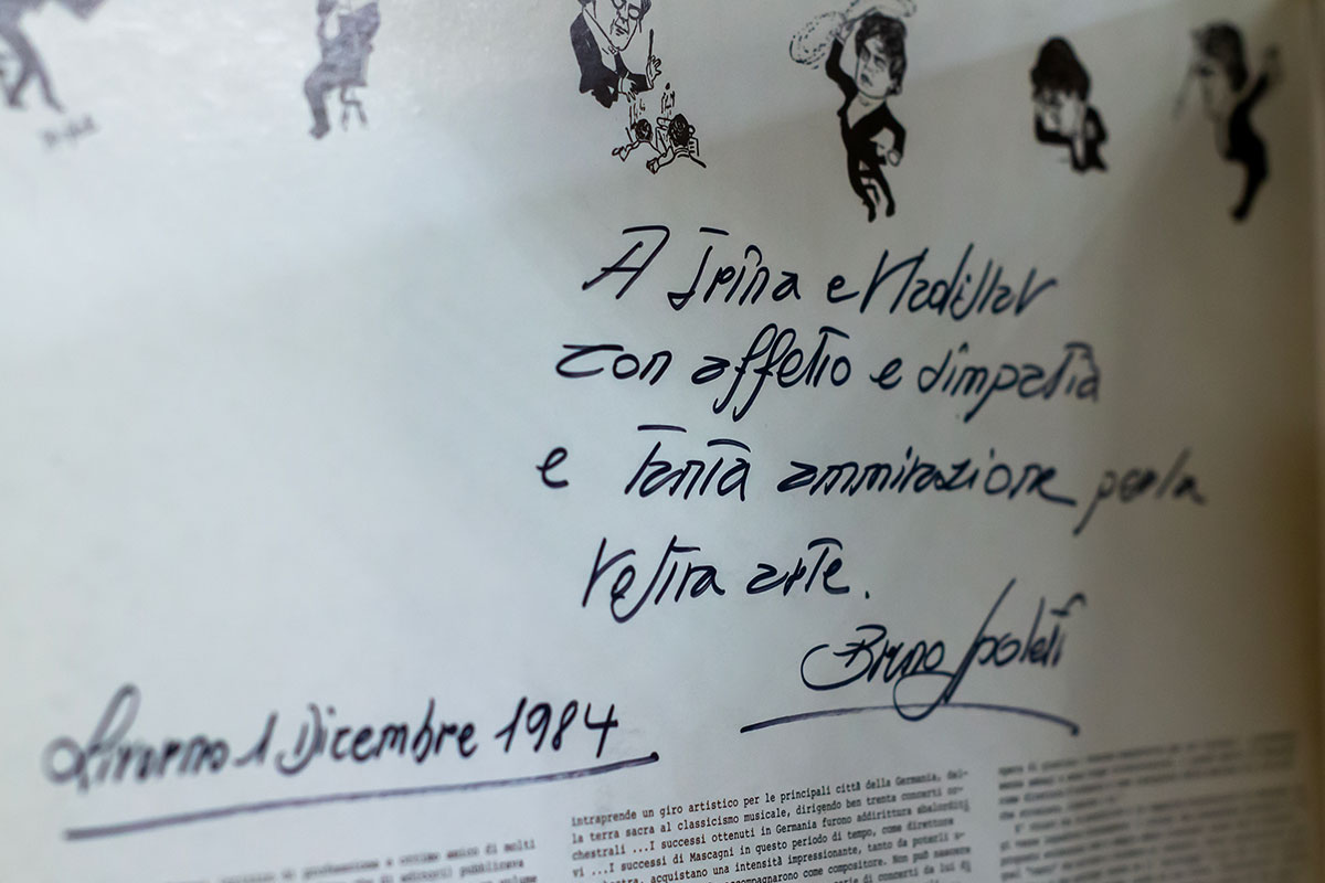 Свои автографы оставляли и зарубежные певцы, дирижёры. На выставке можно увидеть дарственные надписи Джона Вустмана, Мерседес Соса, Марио дель Монако, Бруно Сполети, Монсеррат Кабалье и других.