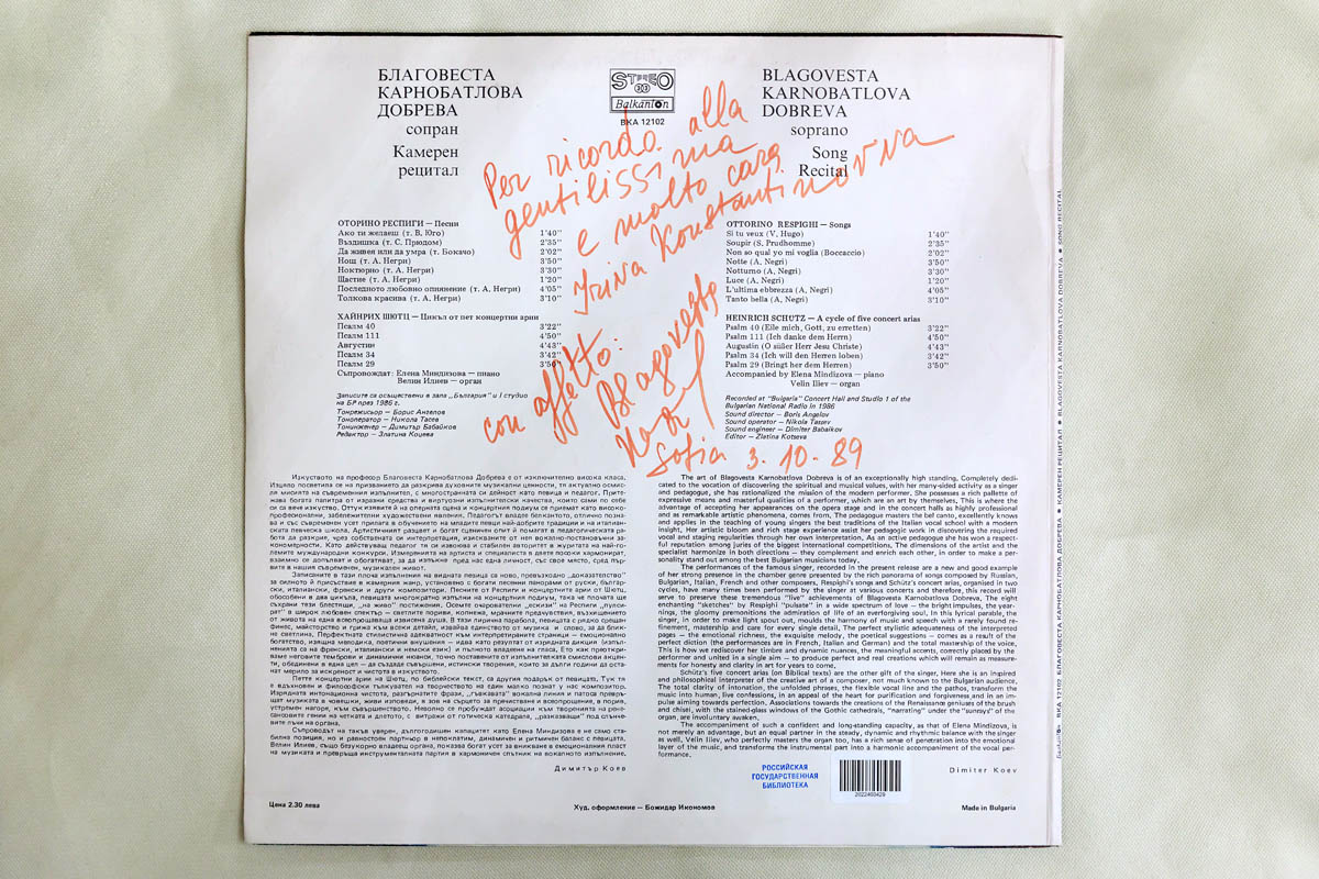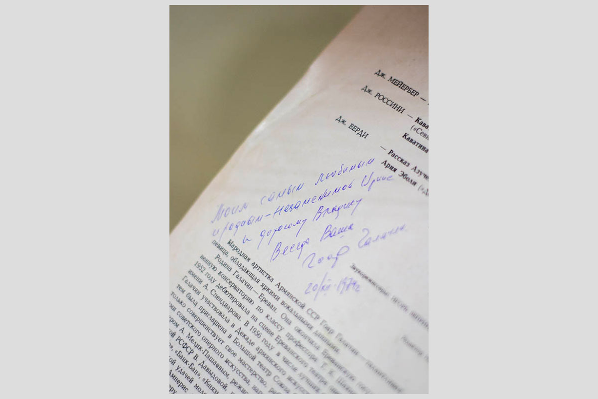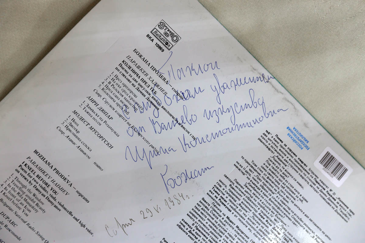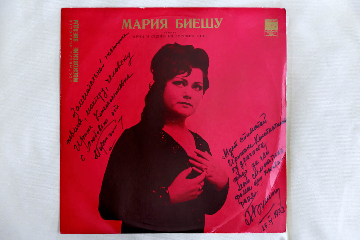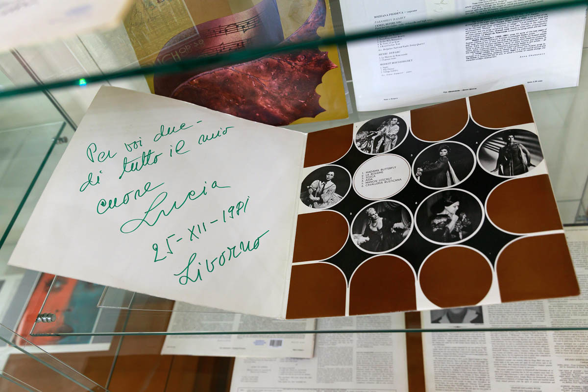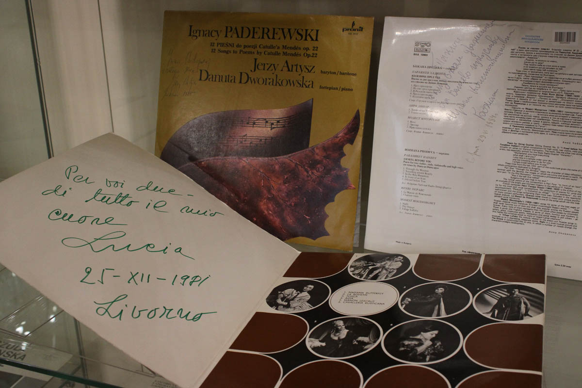 Особое внимание на выставке уделяется многочисленным автографам, оставленным на конвертах коллегами, друзьями, учениками, знакомыми певицы. Пластинки преподносились в знак глубокого уважения и любви к оперной диве, к человеку.
