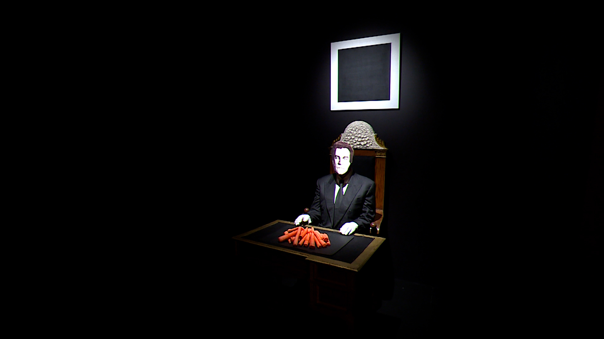 «Сидел так же, только в белых декорациях, Малевич. Могли войти посетители, взять морковку, ее съесть – то есть переваривание супрематизма на физиологическом уровне», – рассказала ведущий научный сотрудник отдела научных течений Русского музея Ирина Карасик.