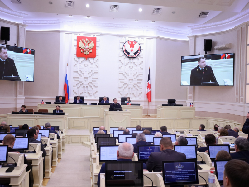 Министр внутренних дел по Удмуртской Республике генерал-майор полиции Максим Тихонов выступил на заседании сессии Государственного Совета Удмуртской Республики с докладом о результатах деятельности республиканского МВД в 2024 году.