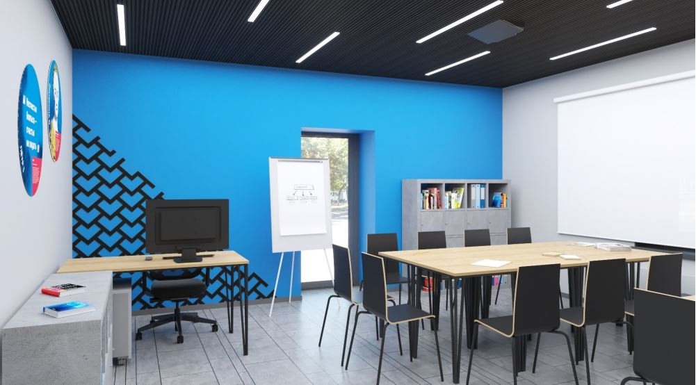 Эскиз внешнего вида учреждения уже разработан. В здании запланировали переговорную комнату, штаб флагманских программ и зал для занятий спортом.