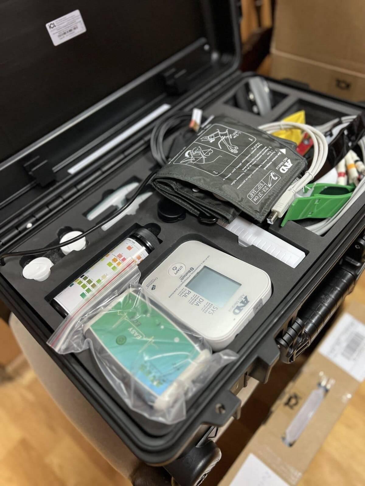 Диагностическое оборудование «Цифрового ФАП» подключается к интернету и сервисам на основе искусственного интеллекта (AI). Решение собрано в компактный кейс, который легко перемещать в отдаленные населенные пункты. Комплекс позволяет измерять артериальное давление, проводить процедуру ЭКГ, оценивать результаты анализов в режиме реального времени.