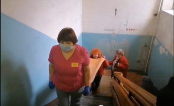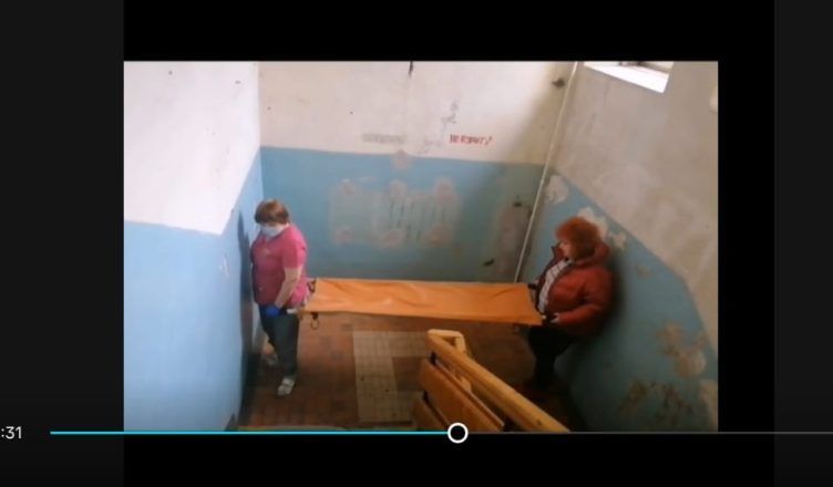 Сотрудники редакции сняли видеоролик и провели эксперимент, где сами выступили в роли носильщиков. Продемонстрировали, как внести носилки с больным с первого этажа на второй и спуститься со второго этажа с больным на первый, обращая внимание на то, что лестница крутая, носилки при движении на второй этаж идущему сзади приходится поднимать практически на плечи. И ещё отметили то, что на площадке между этажами трудно развернуться… Носилки были пустые. А если бы на них лежал пациент? Представить этот «альпинизм» очень затруднительно…
