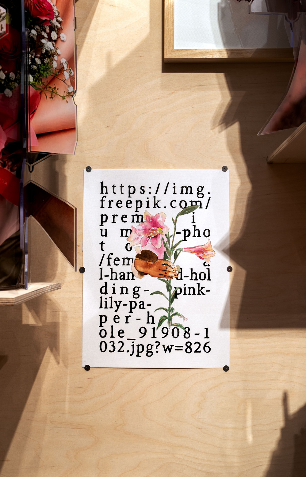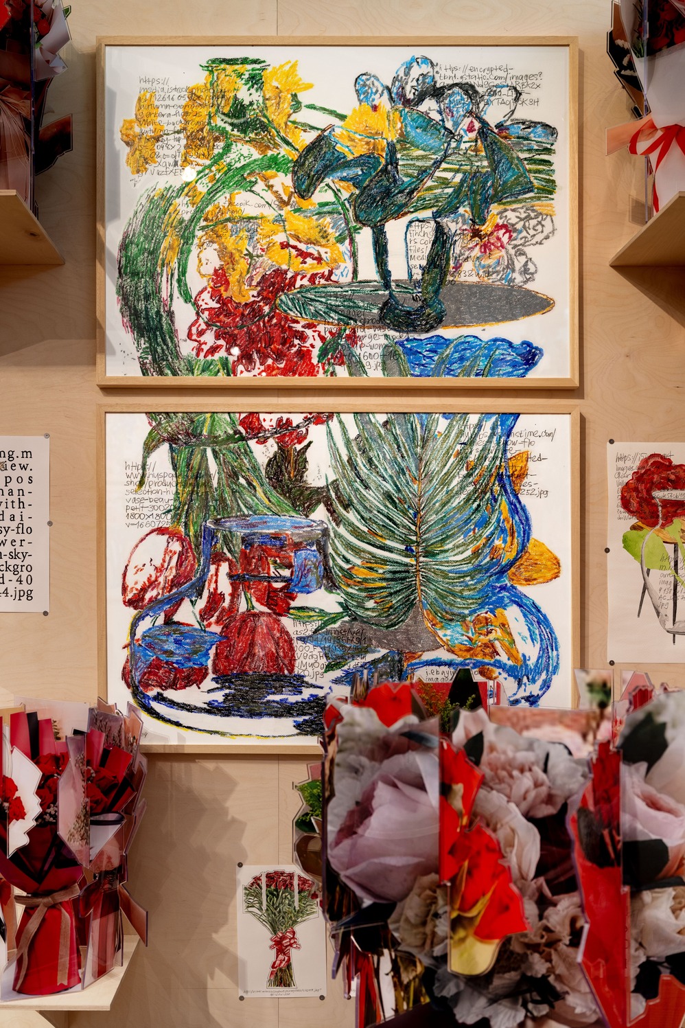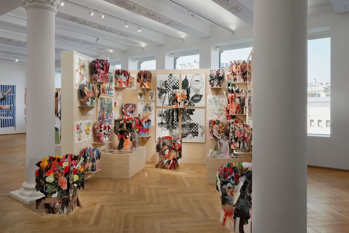 К слову, изменения коснулись не только пространства Gallery, но и образа цветов в целом: они представлены в виде графики, живописи, скульптуры. Букеты собраны из разных деталей, цифровые фотографии нарисованы акварелью или выглядят как поисковые ссылки. Так, превращения и метаморфозы стали одной из основных тем экспозиции. «Меня всегда увлекала возможность менять знакомые и привычные пространства, пересматривать правила и подвергать сомнению устоявшееся восприятие чего бы то ни было. Человек склонен упрощать мир — так проще жить и делать свои дела, поэтому ему сложно пересобрать знакомые ситуации, представить другие возможные отношения и свой взгляд на мир. Поэтому, если появляется такая возможность, я стараюсь включить подобные сбои и фокусы в свои проекты», — объясняет Кавка.