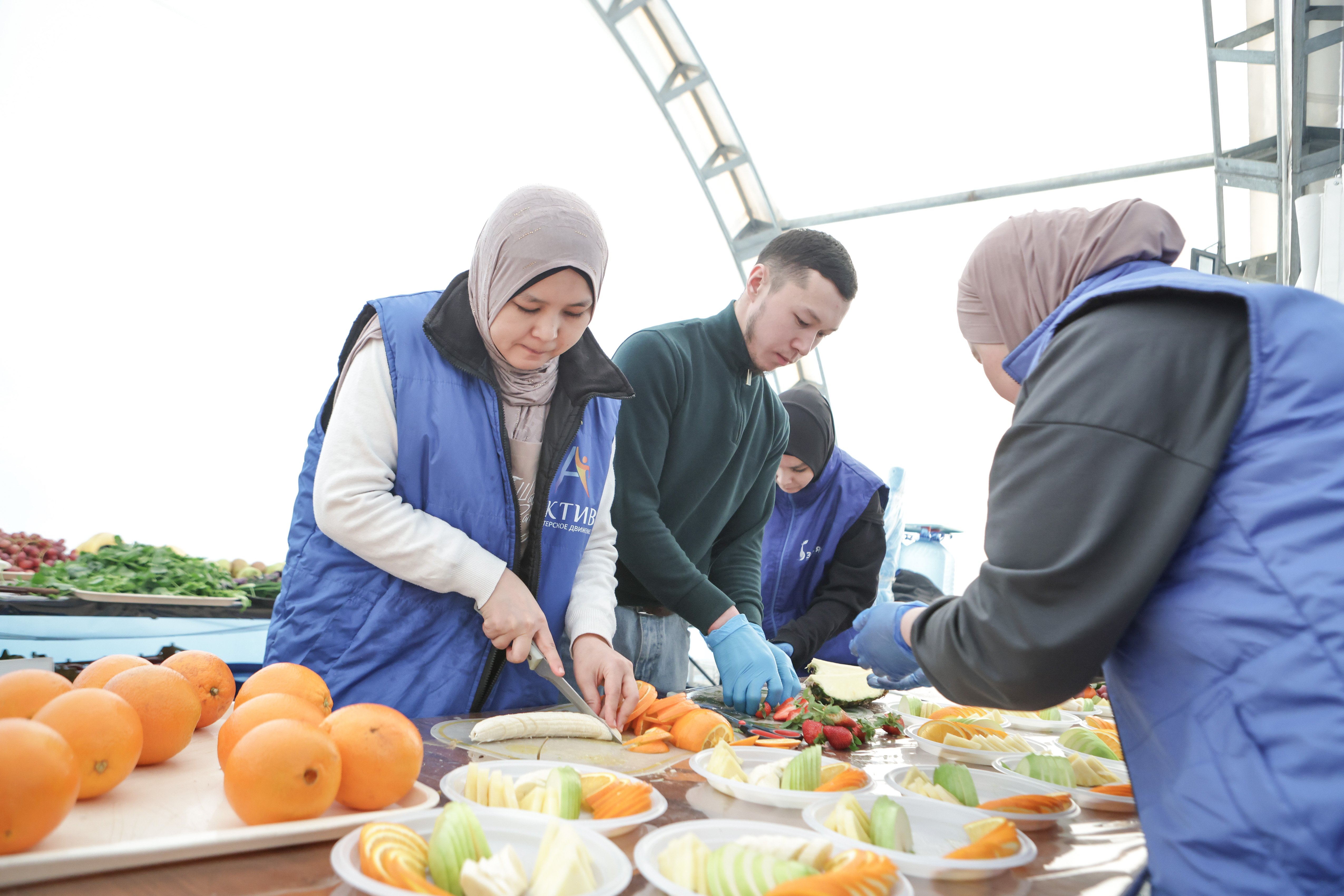 За полчаса до официального открытия волонтеры накрывали столы, разносили овощи, фрукты, сладости и напитки. Горячее, чтобы оно не остыло, подавали перед самым началом ужина.