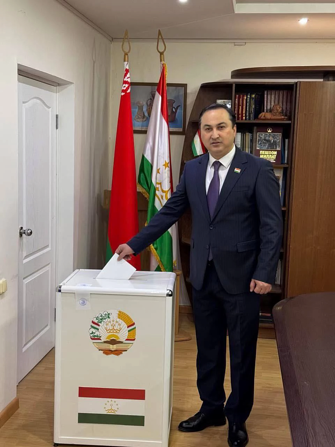 В частности, за ходом голосования на избирательном участке в Посольстве Республики Таджикистан в Республике Беларусь наблюдал заместитель Генерального секретаря СНГ Нурлан Сейтимов.