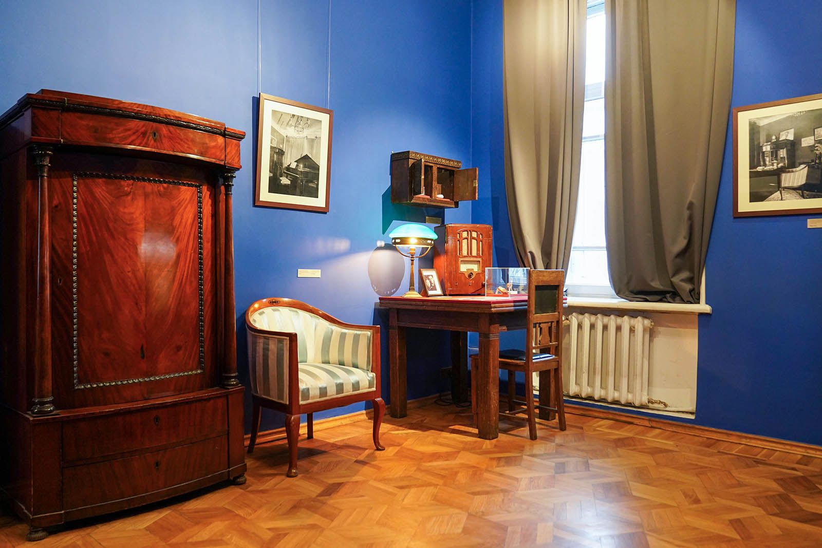 Государственный музей В.В. Маяковского открылся для посетителей в начале 1938 года в Гендрикове переулке (сейчас это переулок Маяковского). В 1974 году музей переместился в проезд Серова (ныне Лубянский проезд). В 1982-м в состав музея вошла квартира на Красной Пресне, где поэт когда-то жил с матерью Александрой и сестрами Людмилой и Ольгой. Этот период длился всего два года — с 1913-го по 1915-й. Квартира была не собственной, а арендованной — одной из тех, которые семья снимала после переезда в Москву с Кавказа.