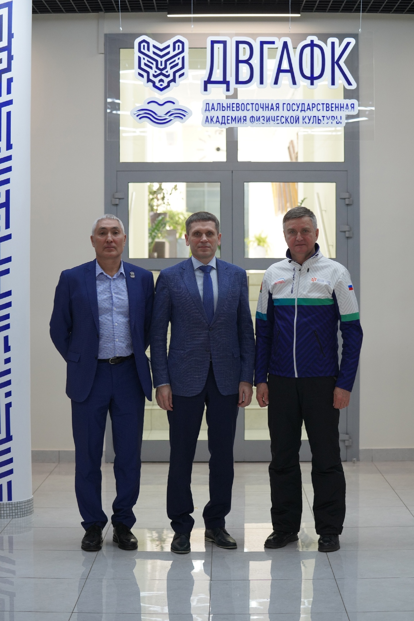 Состоялась встреча ректора ДВГАФК Сергея Викторовича Галицына и проректора по спортивной работе Академии Олега Зуфаровича Зиганшина с Александром Юрьевичем Близневским, вице-президентом Федерации спортивного ориентирования России, Российского студенческого спортивного союза, директором «Института физической культуры, спорта и туризма» Сибирского федерального университета. ПОДРОБНЕЕ.