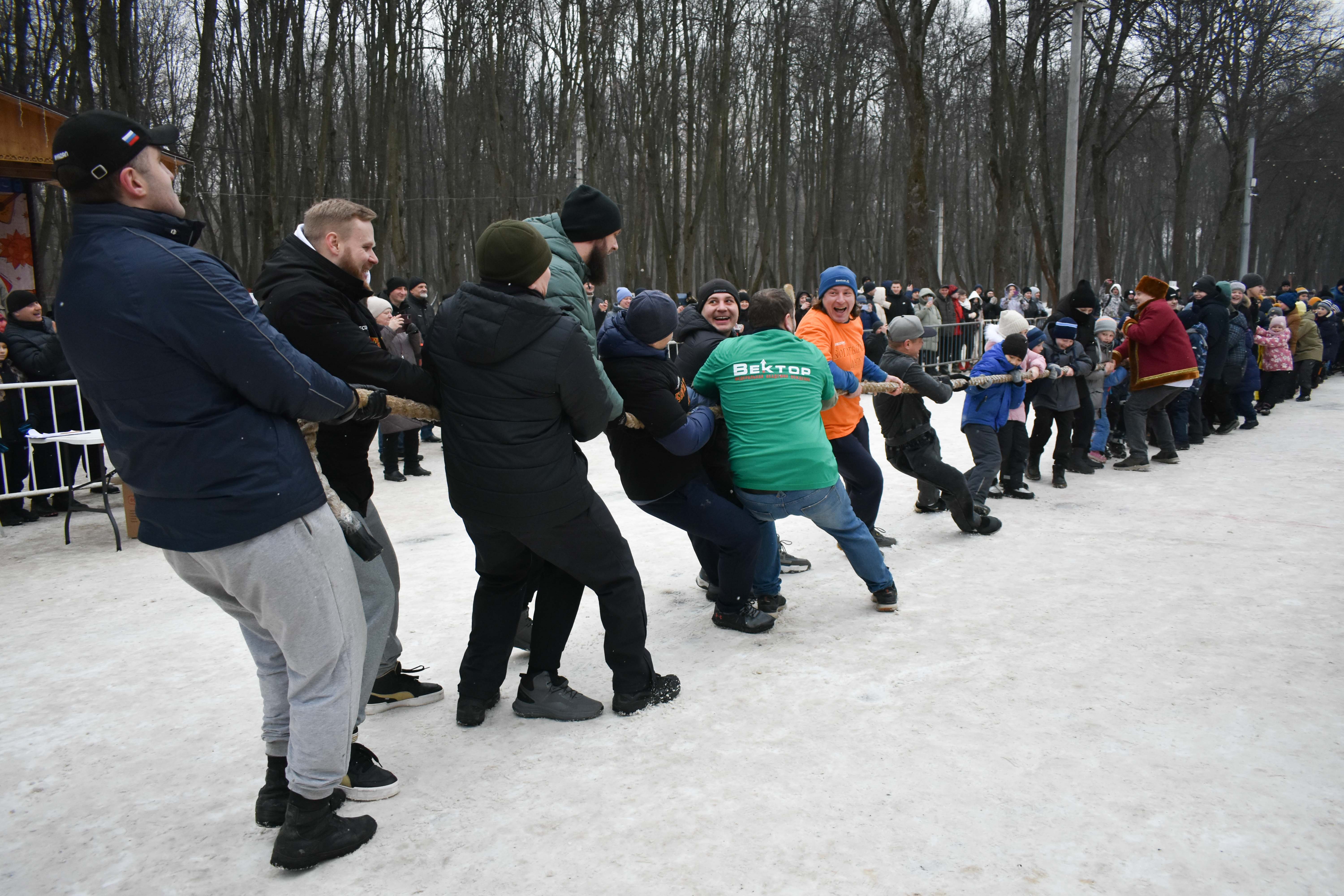 Но главную интригу праздника оставили напоследок. В перетягивании каната соревновались победители и участники турнира «Богатырский дух» и… дети. Команде богатырей дали название «Зима», а детской – «Весна». Не обращая ни малейшего внимания на пролетающий снег, «Весна» с лёгкостью одержала победу, предвещая тем самым скорое наступление долгожданной оттепели.