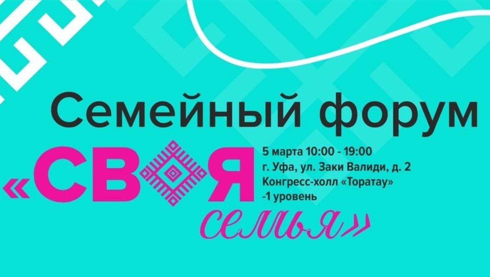 На площадке конгресс-холла «Торатау» в Уфе 5 марта состоится семейный форум «СВОЯ семья», посвященный вопросам воспитания, здоровья и развития детей и подростков.