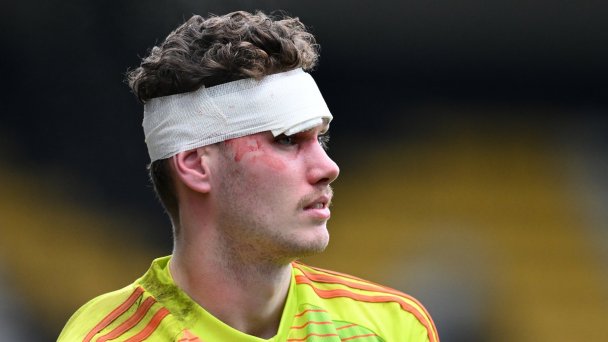 Дэниел Барден из «Суиндон Таун» покидает матч после травмы головы (Фото Getty Images)