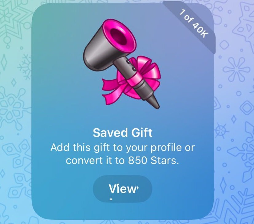 8 марта в Telegram появился новый подарок, который похож на известный фен Dyson.