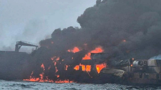 Позже стало известно о возгорании нефтяного танкера, к месту происшествия отправили суда с оборудованием для тушения пожаров. Спасательная операция продолжается и сейчас, к ней подключили самолет береговой охраны и корабли.
