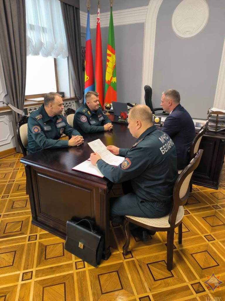 В ходе визита заместитель министра совместно с начальником Брестского областного управления МЧС Валерием Рудольфом провел встречу с председателем Барановичского городского исполнительного комитета Максимом Антонюком. На повестке дня – изучение хода специального профилактического мероприятия «Дом без пожара», которое проходит сейчас, в том числе, и в Барановичском районе. Внимание акцентировали на обследовании жилищного фонда целевой аудитории, проведении разъяснительной работы с населением. Также рассмотрели вопросы предупреждения пожаров в природных экосистемах, безопасности на объектах, гибели людей на воде. Обсудили проблемные вопросы с руководством горисполкома.