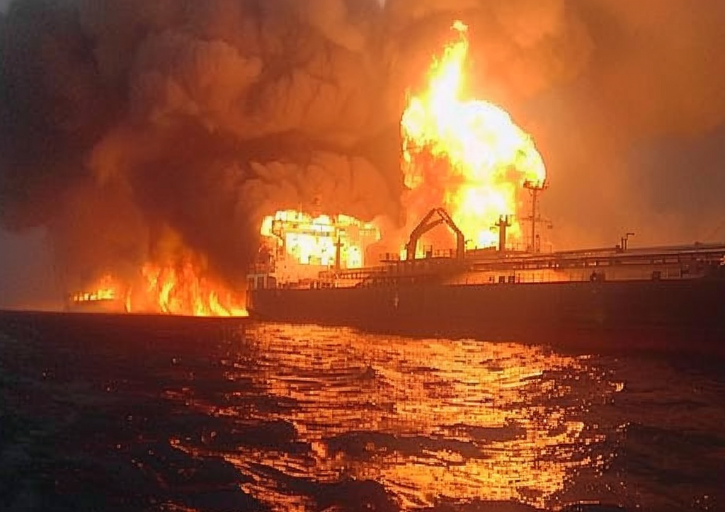 Это привело к разливу топлива и его возгоранию. Специалисты активировали экстренный план реагирования. Ведется работа по локализации пожара и обеспечению безопасности судна. Подробности уточняются.